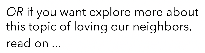 We’ve gathered a wealth of information to help us more fully envision ways we can love our neighbors, both at our own church and by looking at what other churches are doing around the world. We invite you to explore the pages, articles, and videos we’ve shared here to learn from individuals and churches who are passionately pursuing this work.